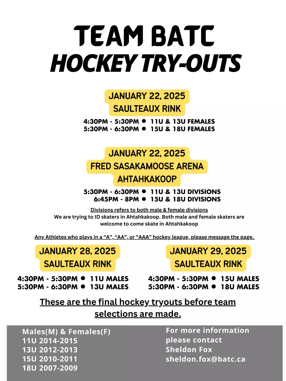 FINAL Hockey & Badminton Tryouts