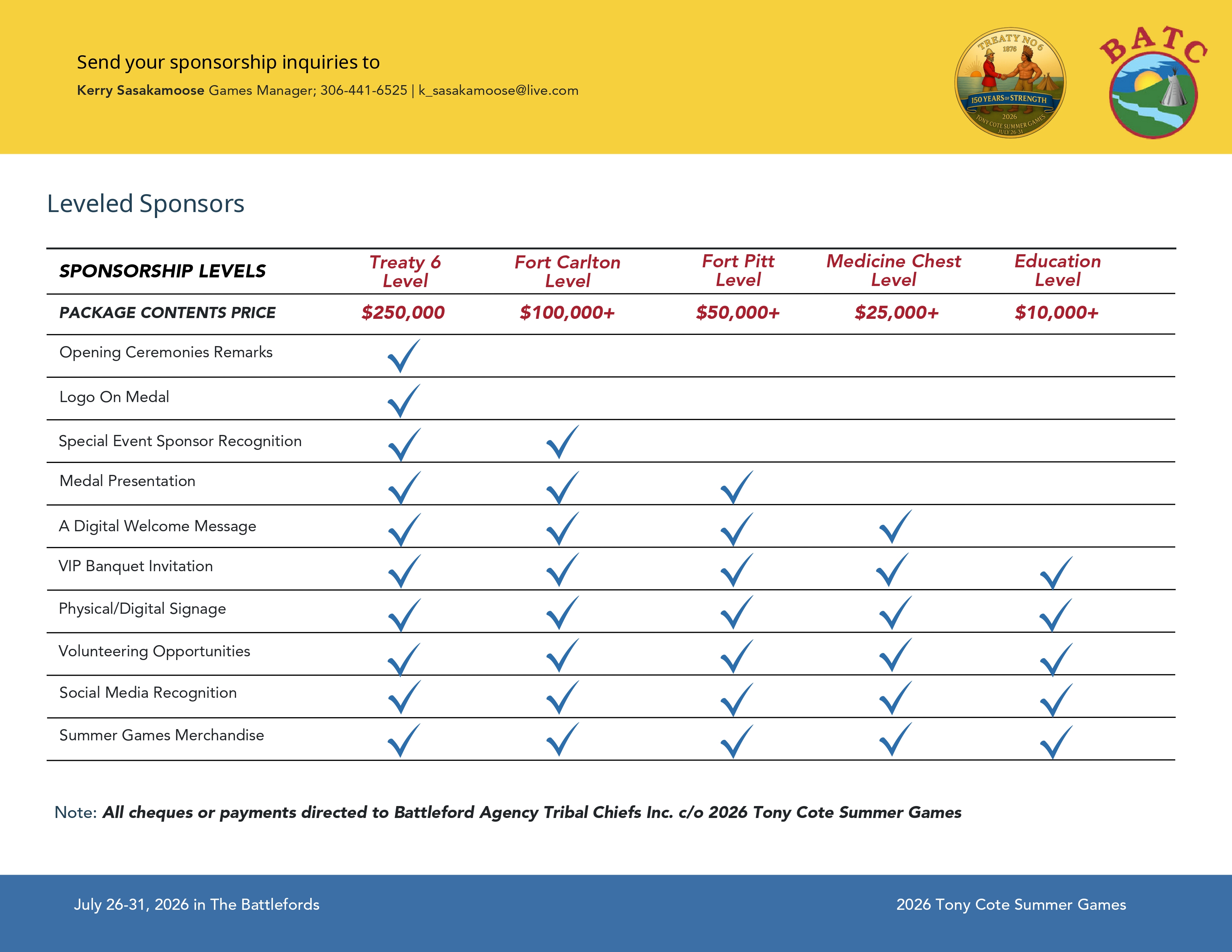 2026 Tony Cote Summer Games Sponsorship Package